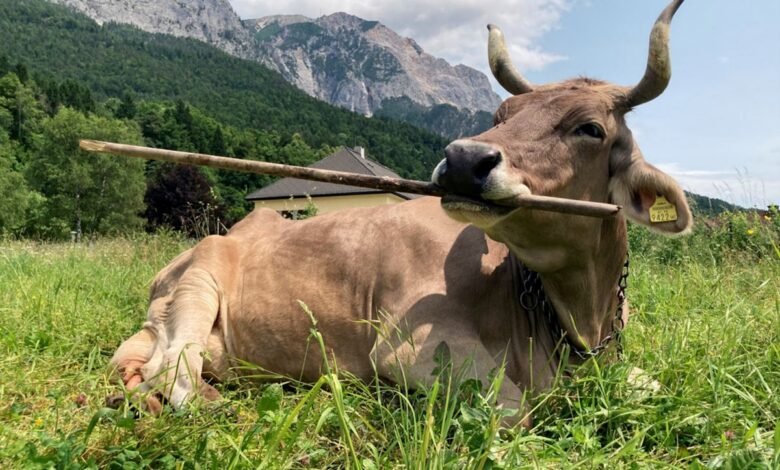 As a companion animal, Veronika, now 13 years old, has lived a long life in a stimulating environment. Nötsch im Gailtal is “the most idyllic place imaginable for an Austrian cow, like straight out of The Sound of Music,” Osuna-Mascaró says. He says the family contributed to Veronika’s tool use by “providing the special conditions that enabled Veronika to express herself.” Although she learned to use tools by herself, starting with branches that had fallen from trees, Wiegele later furnished her with sticks and rakes that allowed her to perfect her scratching techniques. Most livestock animals, in contrast, live much shorter lives and spend their time in impoverished settings such as factory farms without access to objects that they can manipulate.