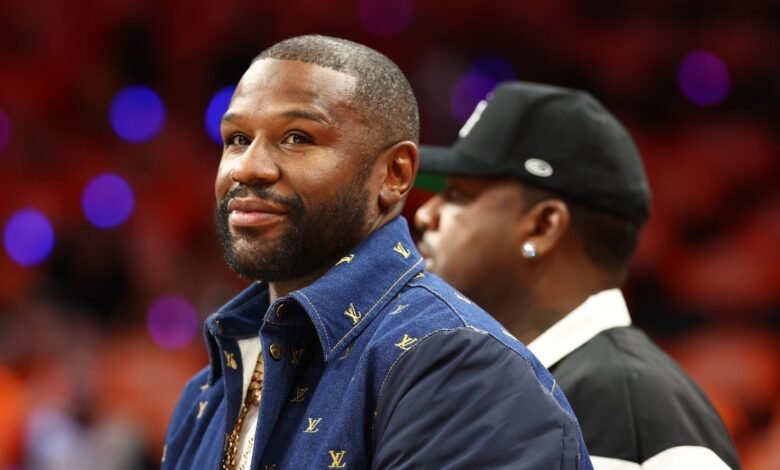 Oct 8, 2025; Phoenix, Arizona, USA; Professional boxer Floyd Mayweather attends the game between the Las Vegas Aces and the Phoenix Mercury for game three of the 2025 WNBA Finals at PHX Arena. Mandatory Credit: Mark J. Rebilas-Imagn Images Boxing legend Floyd Mayweather will face kickboxer Mike Zambidis in a June exhibition in Athens, Greece, before he comes out of retirement later this year.