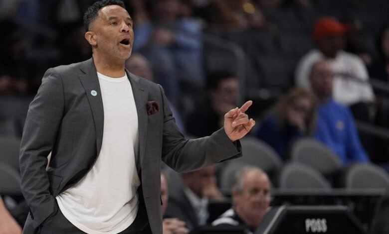 Mar 12, 2025; Charlotte, NC, USA; Georgia Tech Yellow Jackets head coach Damon Stoudamire calls to his team during the first half against the Virginia Cavaliers at Spectrum Center. Mandatory Credit: Jim Dedmon-Imagn Images Freshman Mouhamed Sylla recorded 16 points and 10 rebounds Monday, helping Georgia Tech grind out a 70-60 victory over visiting Southeastern Louisiana in Atlanta.
