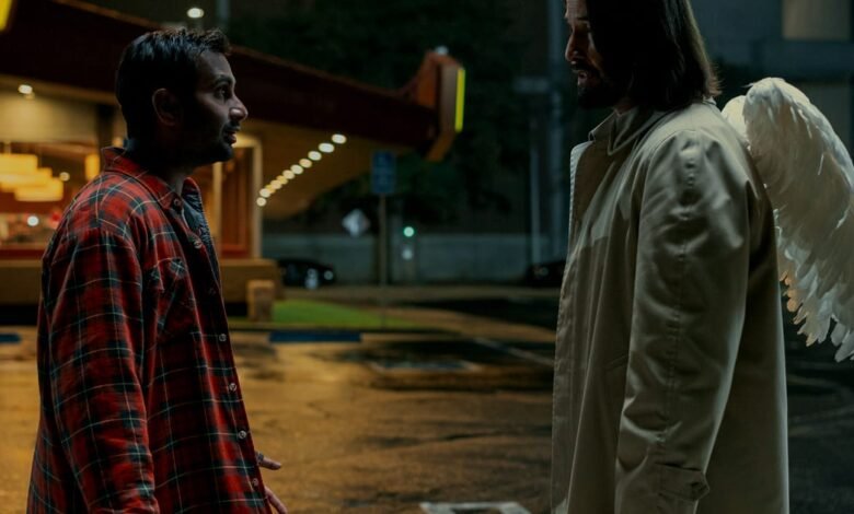 But it doesn’t last long. Jeff fires him for using the company card on a lavish date with Elena, and he’s back to square one. Exhausted and demoralised, Arj edges towards suicidality as a celestial power watches on from above: a guardian angel named Gabriel (Keanu Reeves) who decides he must intervene. We learn that Gabriel is a low-ranking angel whose primary assignment is to save people from texting-while-driving accidents by tapping them on the shoulder. He envies Azrael (Stephen McKinley Henderson) who wields more responsibility as a shepherd of ‘lost souls’ and has a pair of far larger feathered wings to show for it.