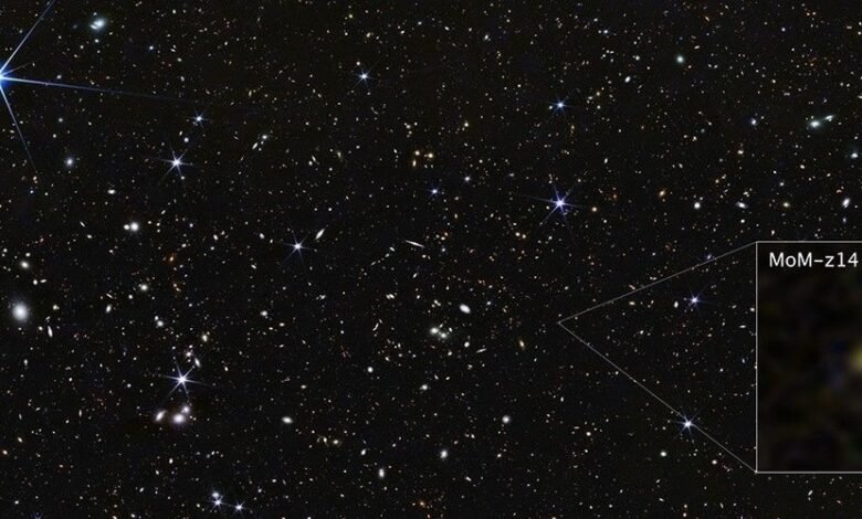 In a galaxy far, far away, there lie clues to the cosmic dawn—the first few hundreds of millions of years in our 13.8-billion-year-old universe’s early history. On Wednesday astronomers on announced that a bright galaxy called MoM-z14 that was found using NASA’s James Webb Space Telescope (JWST) is the farthest yet detected, existing just 280 million years after the big bang.