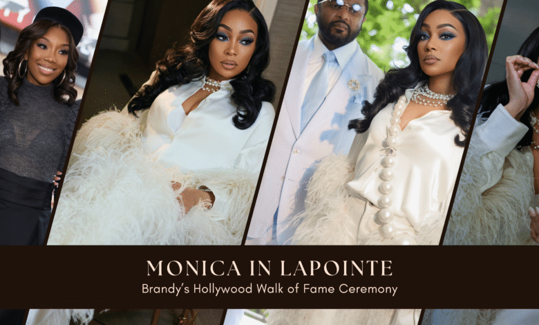 Monica attended Brandy’s Hollywood Walk of Fame ceremony alongside her husband Anthony “Ant” Wilson, wearing an ivory ensemble by LaPointe that combined soft tailoring with textural detail.