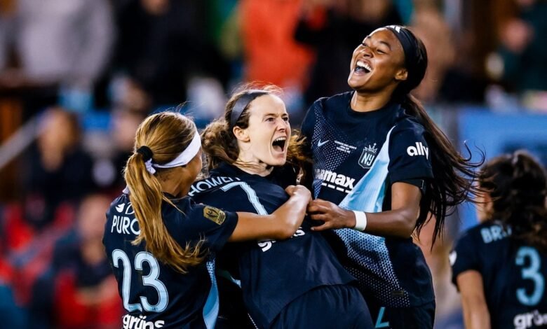 Nov 22, 2025; San Jose, California, USA; Gotham FC midfielder Rose Lavelle (16) is congratulated by forward Midge Purce (23) and midfielder Jaedyn Shaw (2) after she scored a goal against Washington Spirit during the second half at PayPal Park. Mandatory Credit: John Hefti-Imagn Images The first NWSL game played in New York City will pit Gotham FC against the visiting Washington Spirit in a rematch of the league’s 2025 championship fixture, the teams announced Tuesday.