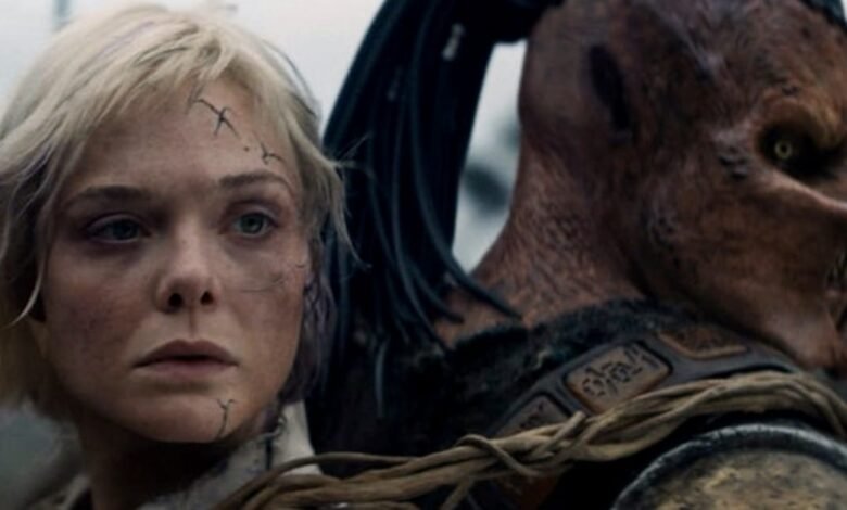The film opens with an exile, as Dek (Dimitrius Schuster-Koloamatangi), the “runt of the litter,” is cast from his Yautja clan (the Predator species). He goes on the hunt for a great beast to prove that he is worthy, with his ultimate plan to return home to enact revenge. It’s not long before he finds a damaged android, Thia (Elle Fanning), who promises to guide Dek to his trophy if he helps her reunite with her legs and sister. The pair start off with something akin to a working relationship that eventually blooms into a friendship as together they find power in their shared weaknesses.