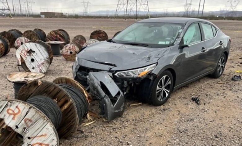 At 10 a.m. Thursday, Boulder City police received a 911 call reporting that a car had smashed through a fence at a power facility and that gunshots were heard moments later. Officers arrived to find a silver Nissan Sentra that had plowed into a stack of industrial wire spools.