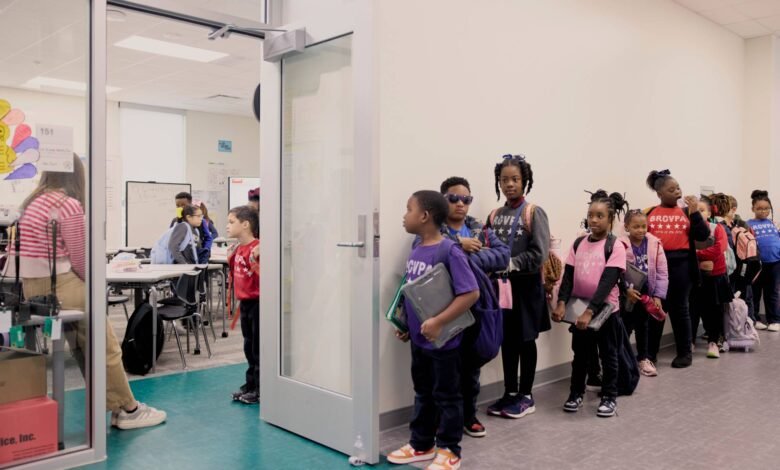On a December morning at the school, young students talked quietly with each other in the hall as they lined up to go from math class to English language arts. All told, the switch took less than five minutes. “We’re at the end of the second nine weeks, so we’ve had a lot of practice,” said GiGi Boudreaux, the assistant principal.