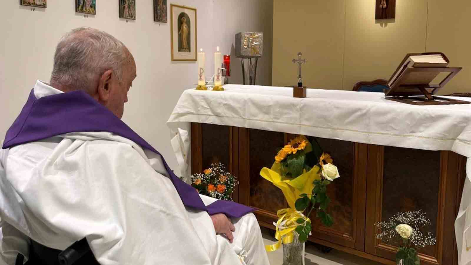 The Vatican said he was participating in the celebration of the Mass with other priests. No one else is visible in the photo. It is the first photograph of the pope since he was hospitalized on Feb. 14 with a severe case of bronchitis, which developed into double pneumonia. It is also the first time the Vatican mentions that the pope has participated in celebrating a Mass in the period.